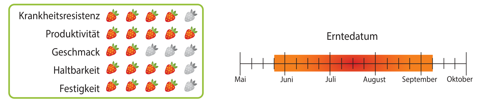 Hademar ist eine Sorte mit hohem Ertrag und einem hohen Anteil an Früchten der Klasse I. Durch die langen Stängel sind die Früchte leicht zu pflücken.